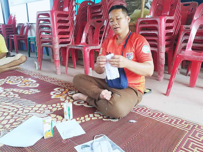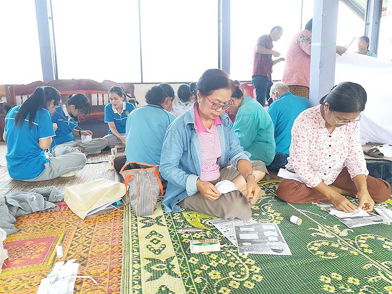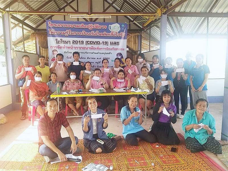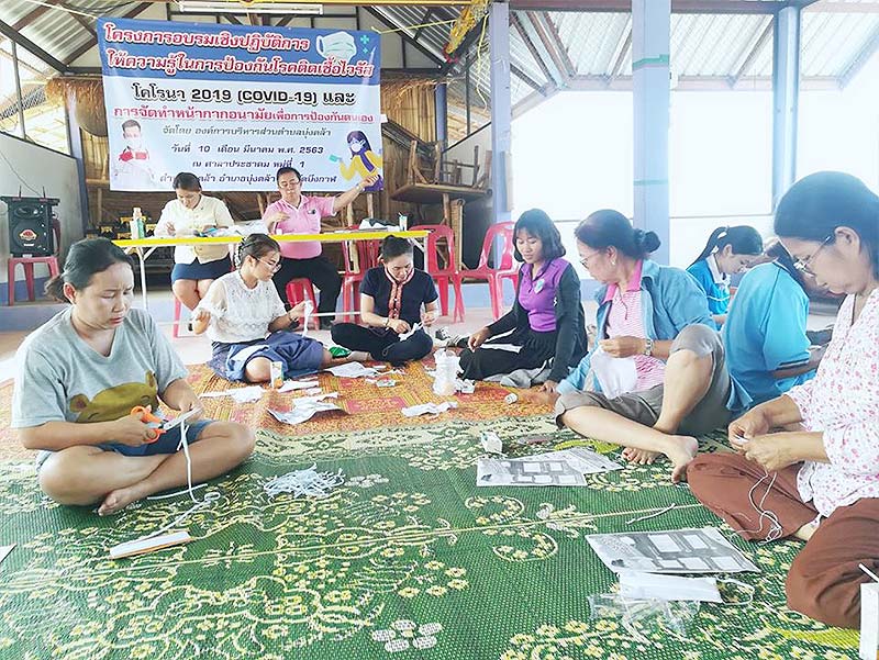 (COVID-19) และการจัดทำหน้ากากอนามัยเพื่อป้องกันตนเอง ณ ศาลาประชาคมบ้านบุ่งคล้าหมู่ที่ 1